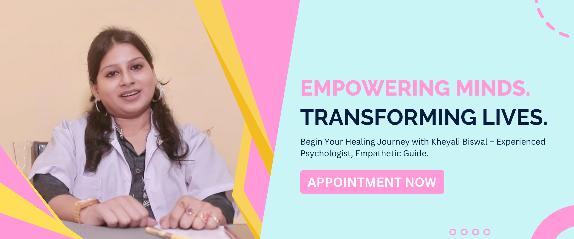 Kheyali Biswal is a dedicated and experienced Psychological Counsellor offering empathetic, evidence-based counselling support through her independent practice. With a strong background in counselling & clinical psychology and years of hands-on experience, she is committed to helping individuals navigate emotional challenges, relationship issues, academic stress, addiction recovery, and more.
